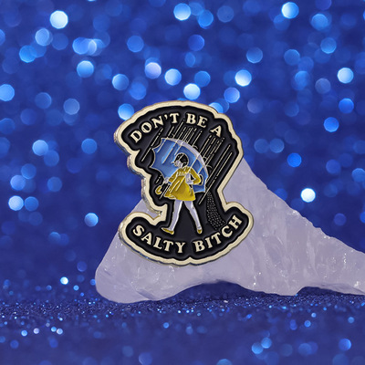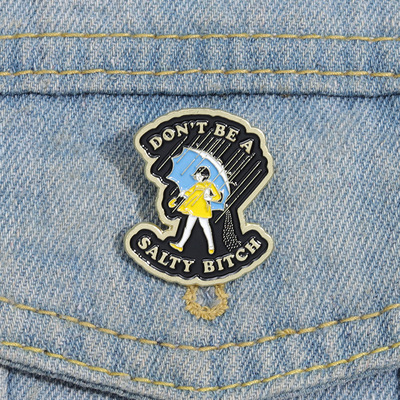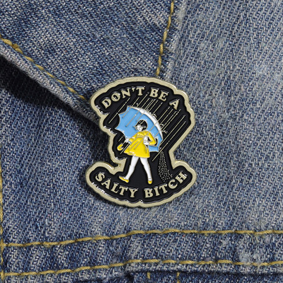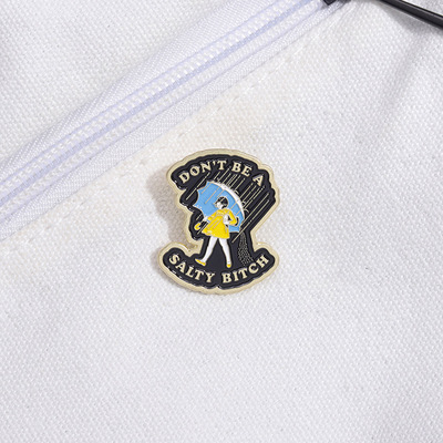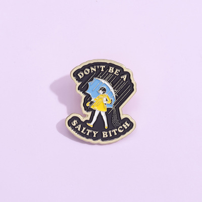 速賣通創意新款 黃色連衣裙的少女造型金屬徽章 個性雨中漫步胸針