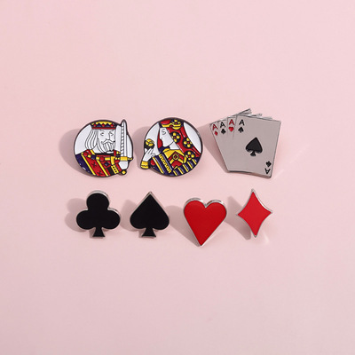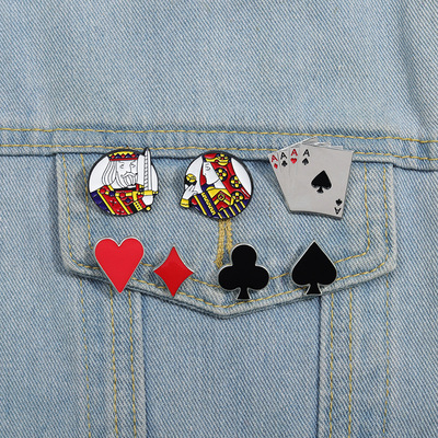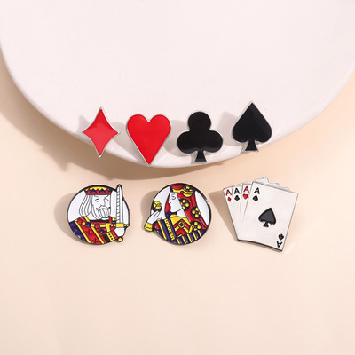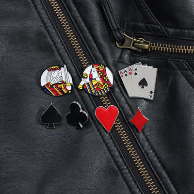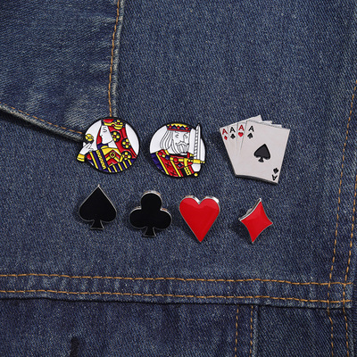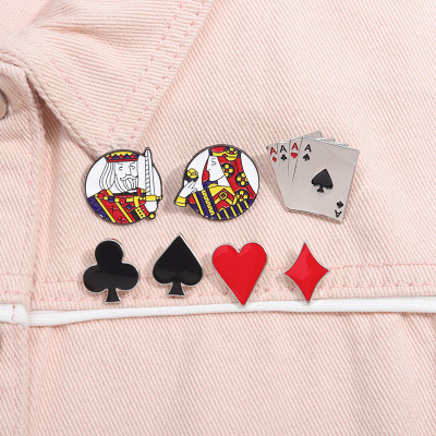 European and American Creative Playing Card Series Pin, Personalized Spade Club Diamond Heart Metal Badge Accessory