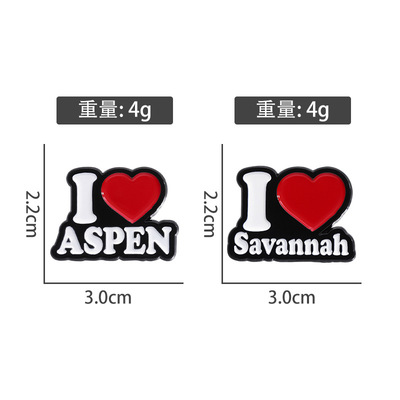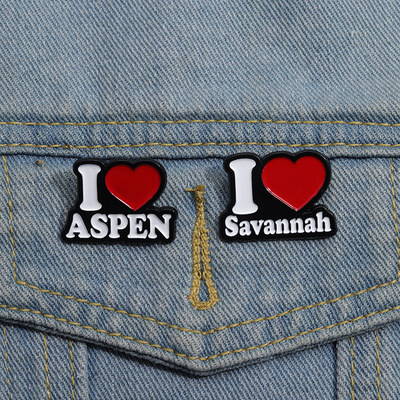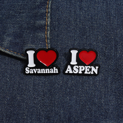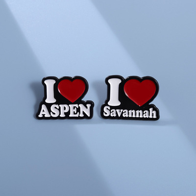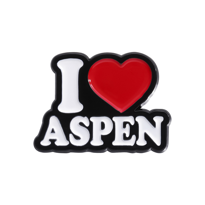 Elegant and Trendy Alloy Brooch with Inscription: "I ASPEN" - Chrome Plated Badge Pin