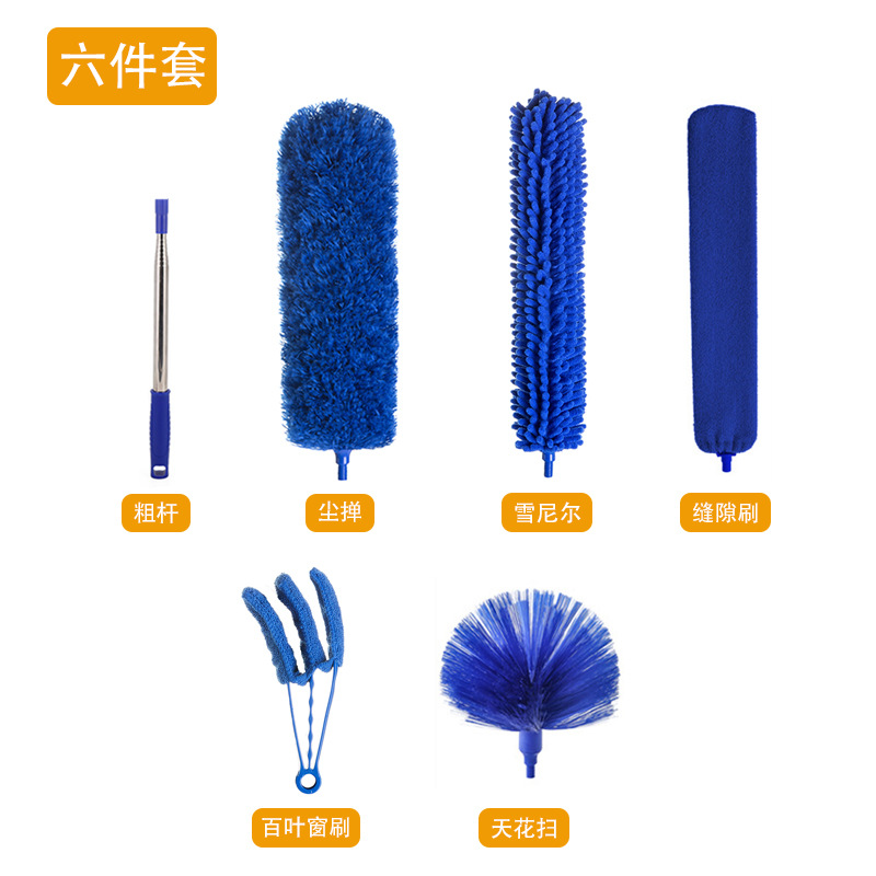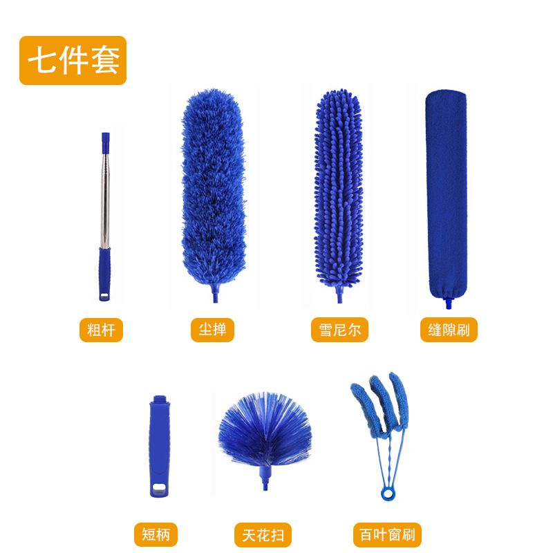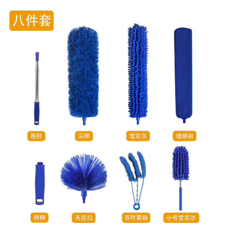 跨境一杆多頭掃灰除塵撣超細纖維加粗可伸縮不鏽鋼杆家用雞毛撣子