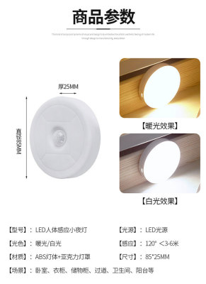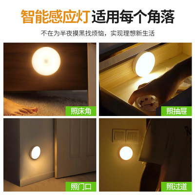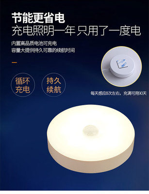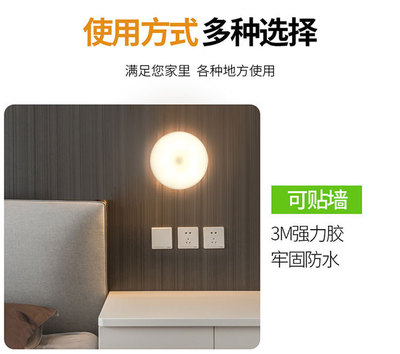 智能感應人體小夜燈無線USB充電創意床頭臥室櫥櫃過道護眼小夜燈