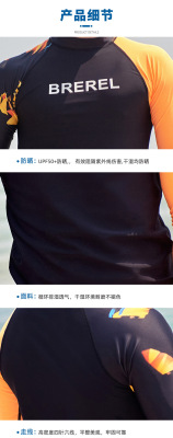 BREREL Korean wetsuit, men's split swimsuit, five-quarter pants suit, long-sleeved quick-drying sportswear, beach suit