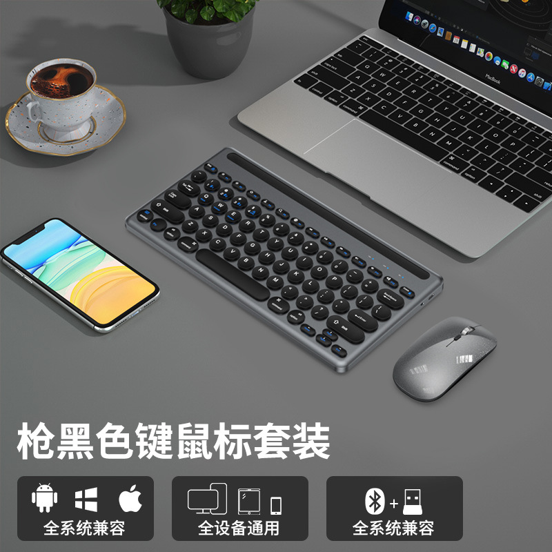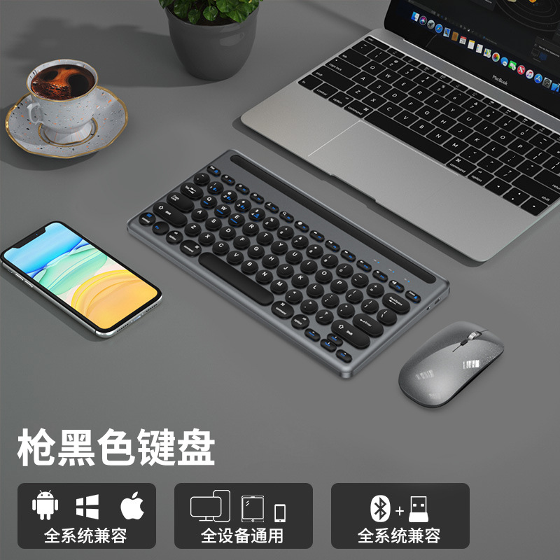 適用於手機平板三模藍牙無線鍵盤鼠標三通道平板卡槽2.4G筆記本