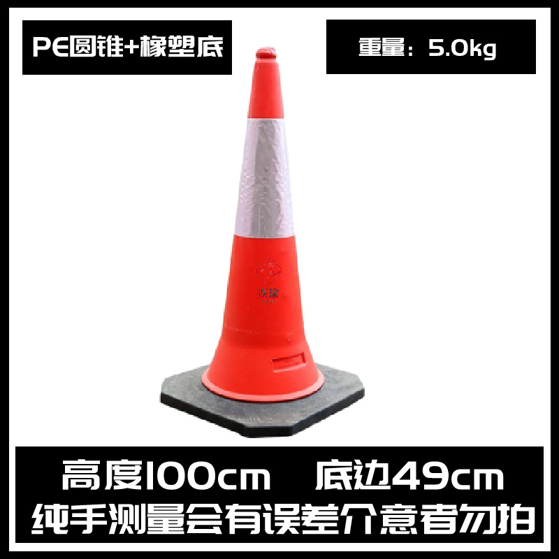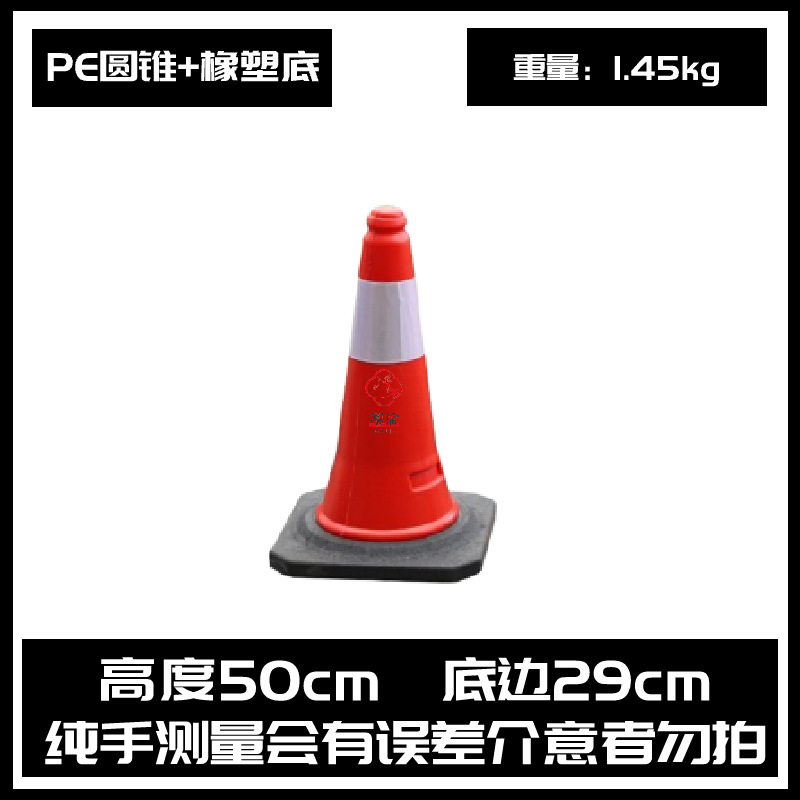 PE reflective traffic cone with enlarged and weighted rubber base, traffic safety warning road barrier, conical bucket traffic obstacle