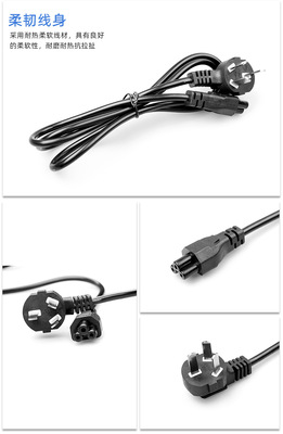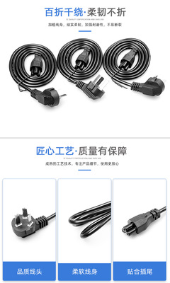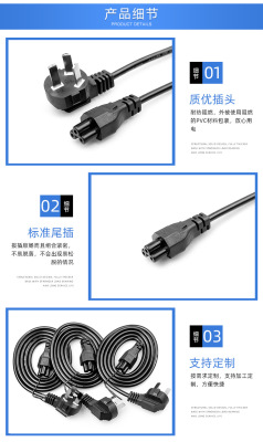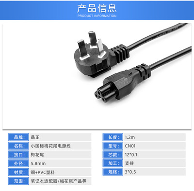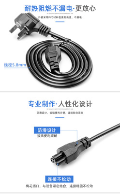 1.2-meter small standard three-hole plum blossom tail power cord for 3-core laptop adapter warm baby charging cable
