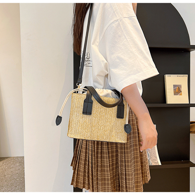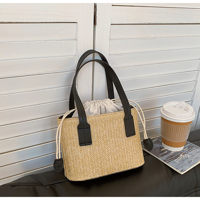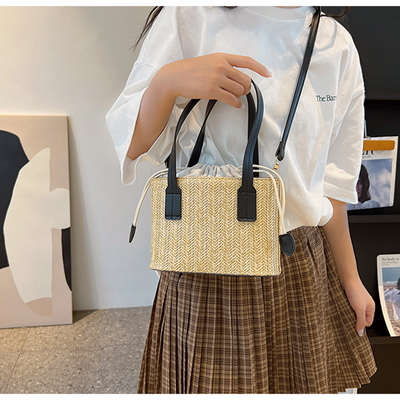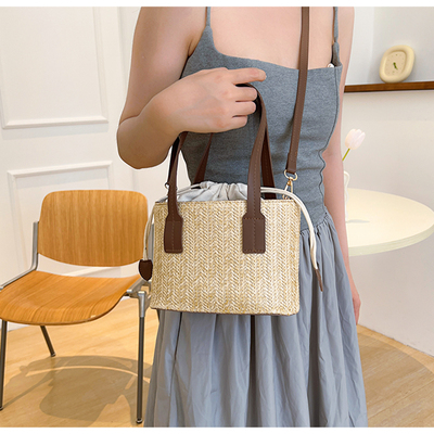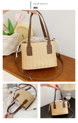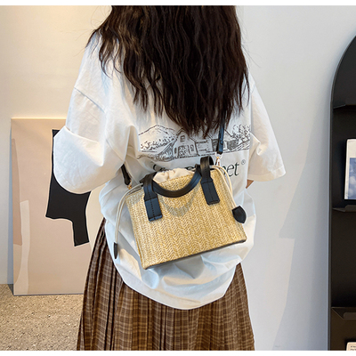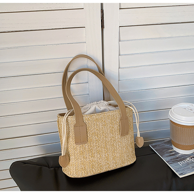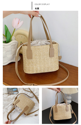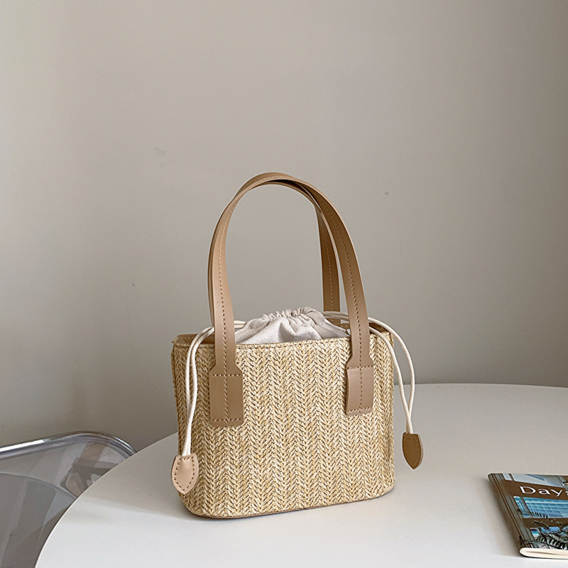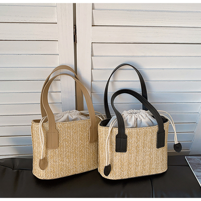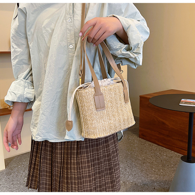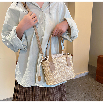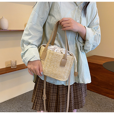 韓國ins休閒編織草編包包女2023新款度假風時尚手提斜挎包水桶包