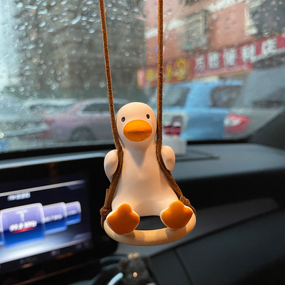 鞦韆鴨汽車掛件車內掛飾吊飾高檔可愛車載香薰香水後視鏡裝飾用品