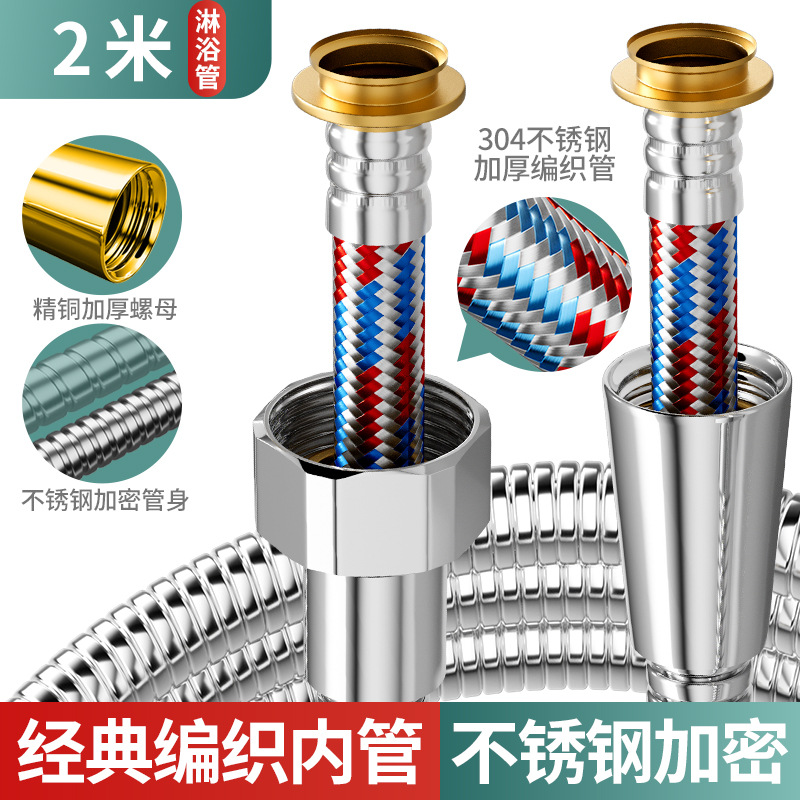Stainless steel shower thickened hose shower hose explosion-proof rain shower head water pipe electroplated metal hose 2 meters 3 meters