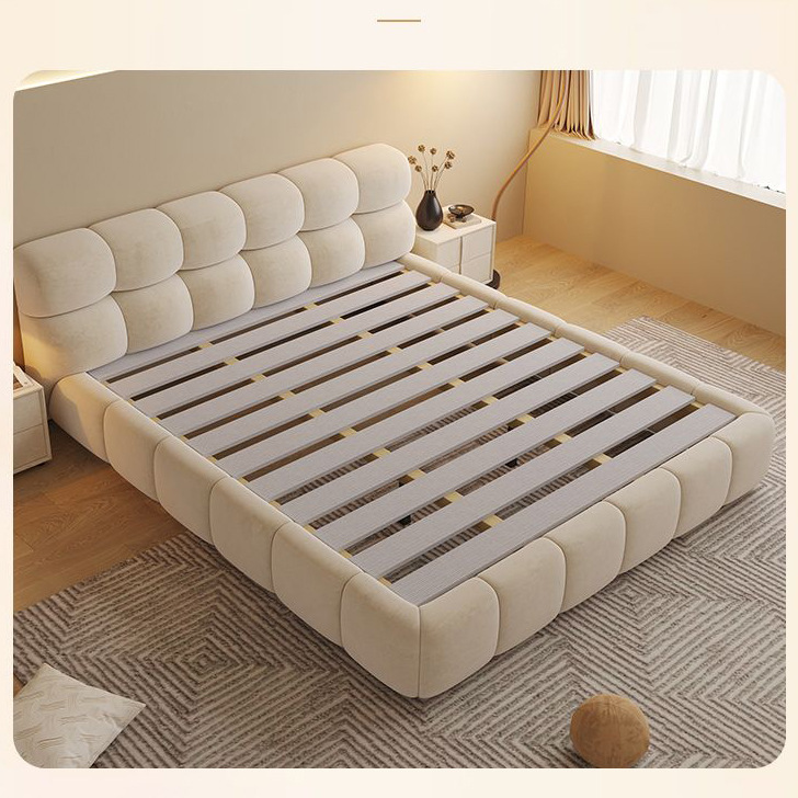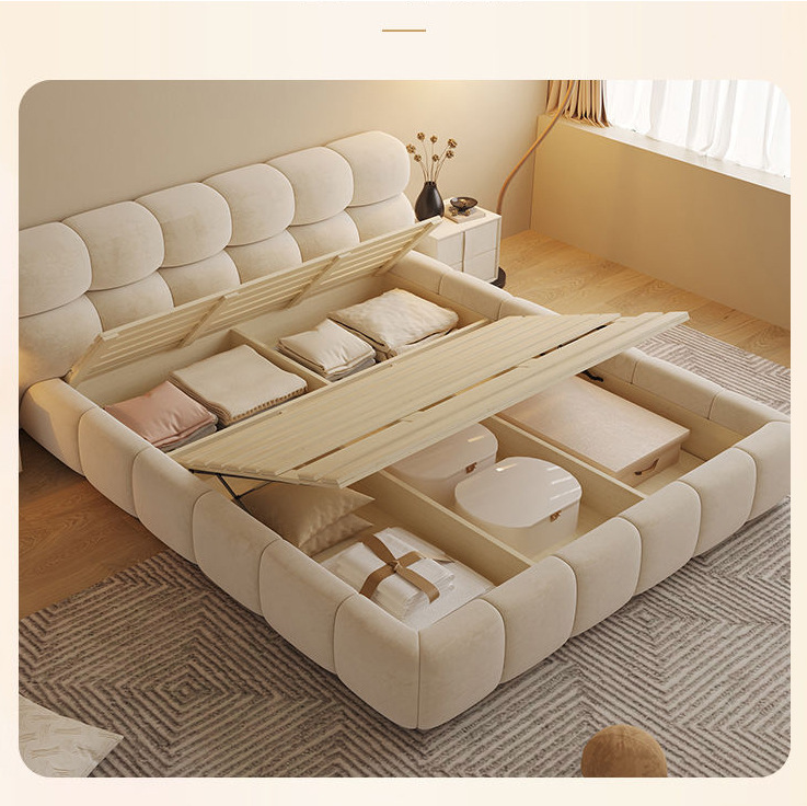 Minimalist cream style fabric puff bed modern simple high box storage wedding bed master bedroom double technology velvet soft bed