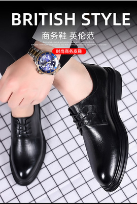 皮鞋男士正裝商務夏季真皮尖頭英倫西裝黑色透氣休閒軟底新郎結婚