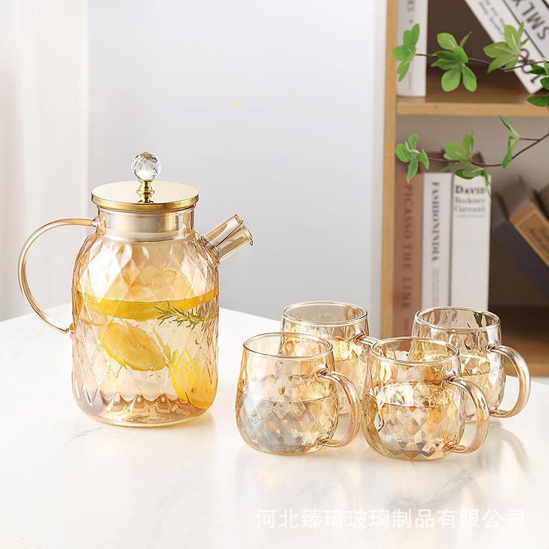 琥珀色涼水壺大容量果汁冷水壺壺蘭陵壺耐高溫家用高顏值水具套裝