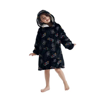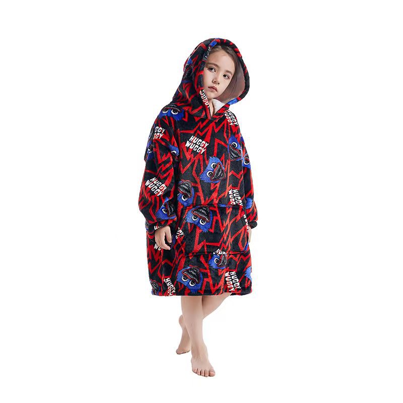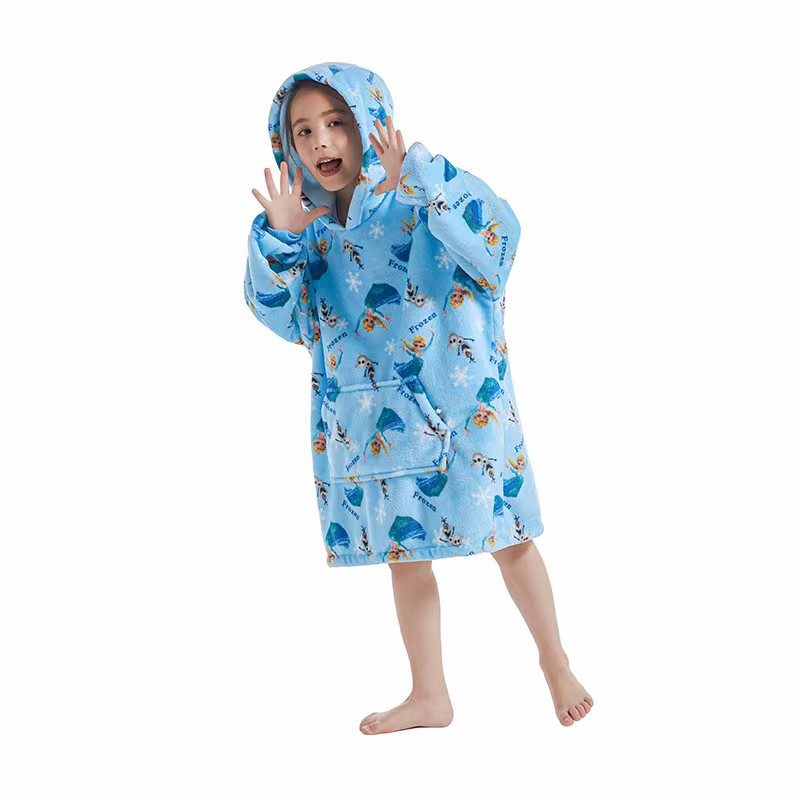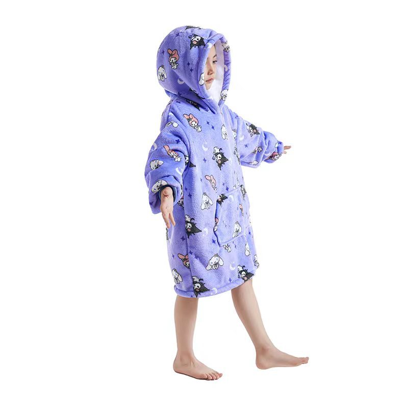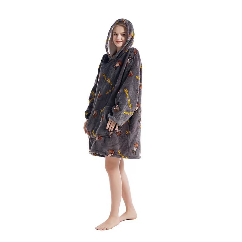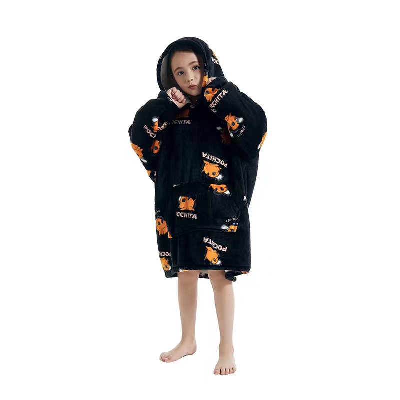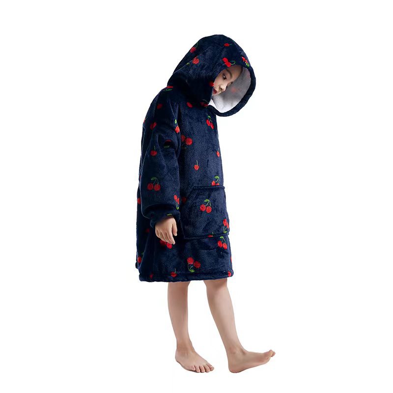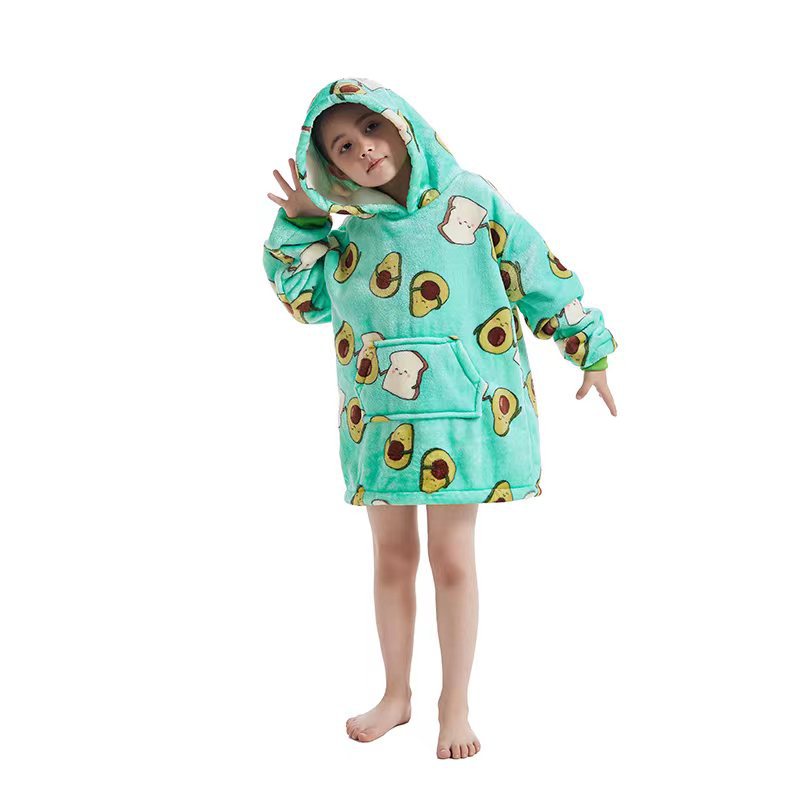Cross-border hooded cold-resistant lazy person's clothes warm lazy person's blanket new cartoon one-piece pajamas parent-child set avocado