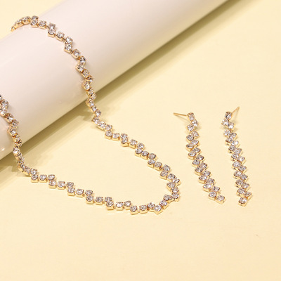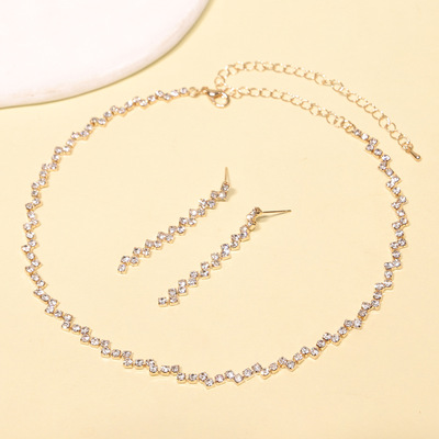 Cross-border e-commerce hot sourcing bridal wedding fashion diamond pendant necklace earring set of two jewelry set wholesale