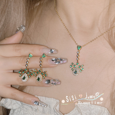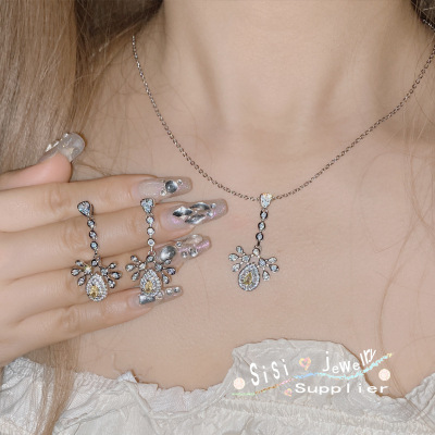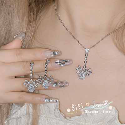 Sisi TikTok Live Jewelry Necklace Set for Women, 18K Plated, Sparkling Diamond Jewelry, European and American Unique Design