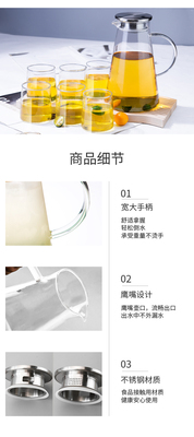 Wholesale cold water kettle glass high temperature resistant household explosion-proof tea kettle large capacity cool boiled water cup set refrigerator cool