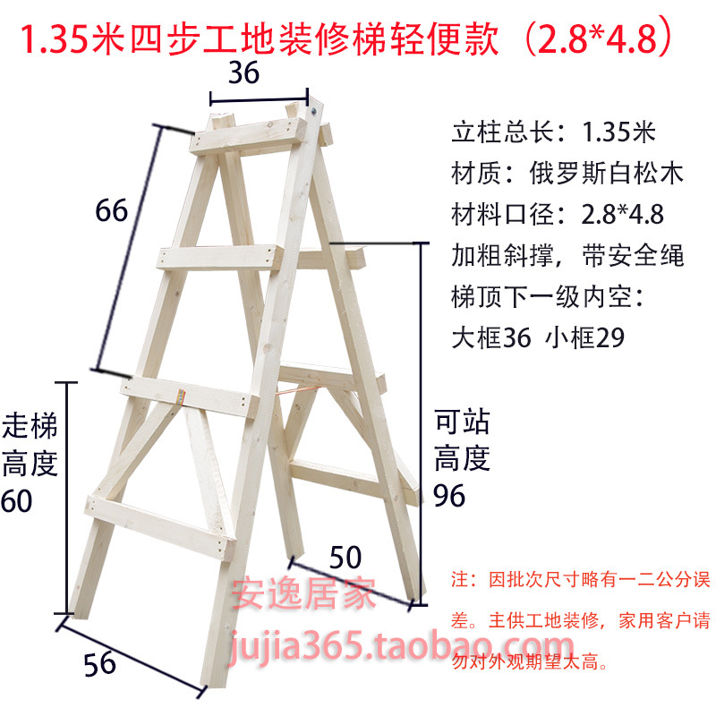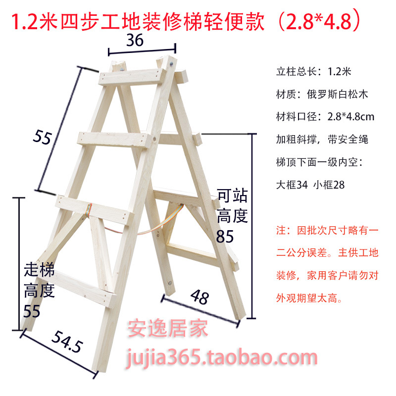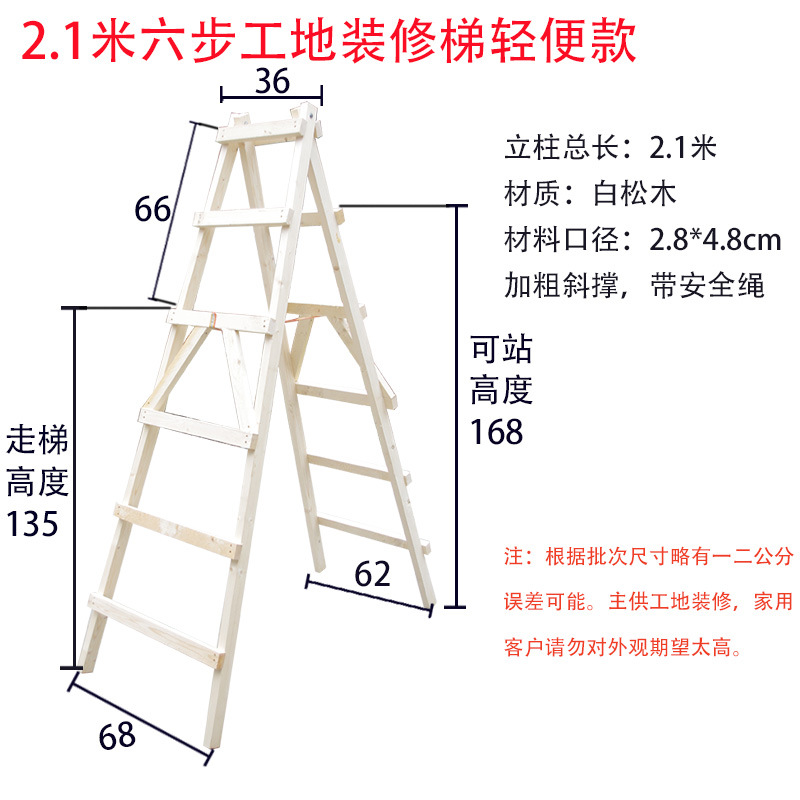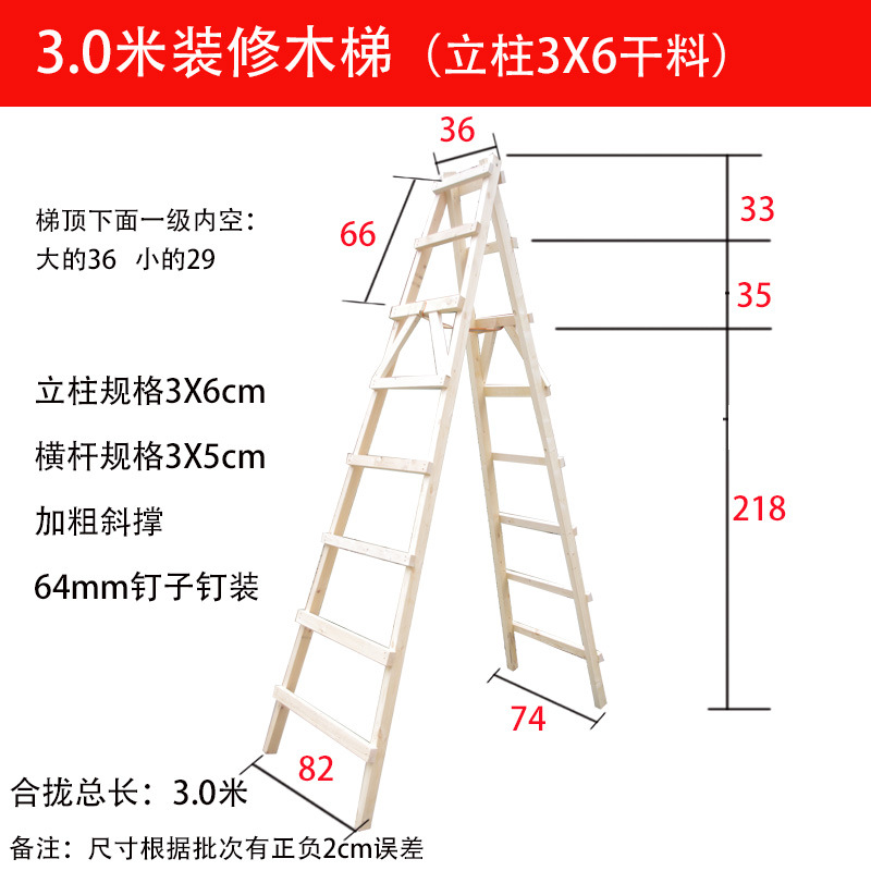 Wholesale pine double-sided ladder, simple decoration wood solid wood climbing ladder, engineering water and electricity wooden ladder construction site