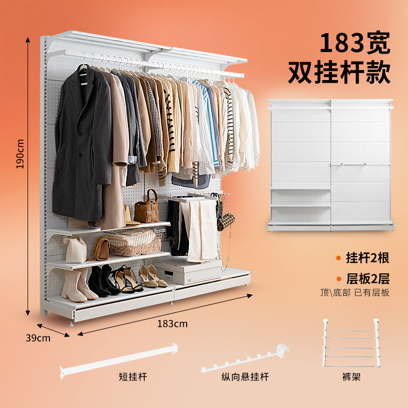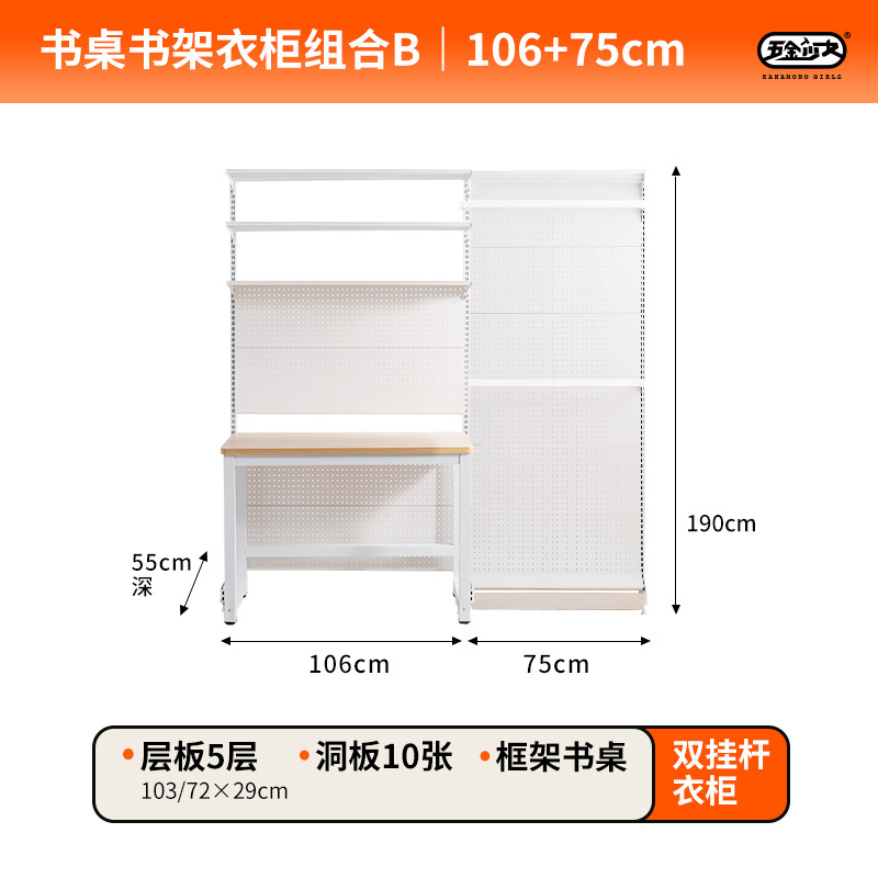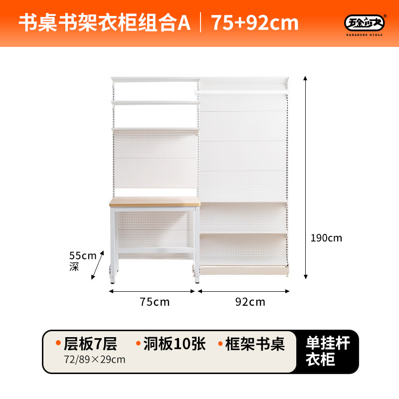 WBZ7置物架衣帽間鐵藝收納簡易金屬洞洞板開放式衣櫃書桌一體