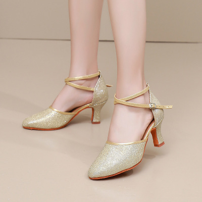Female adult Latin dance shoes Modern soft sole practice dancing shoes Bag toe medium high heel ballroom dance summer dance shoes