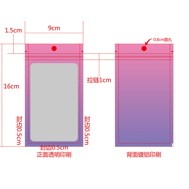 Specifications and models: 9*16cm (purple to pink)