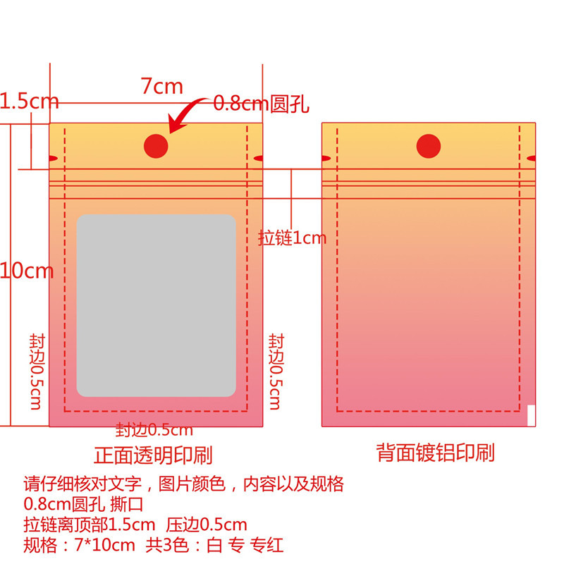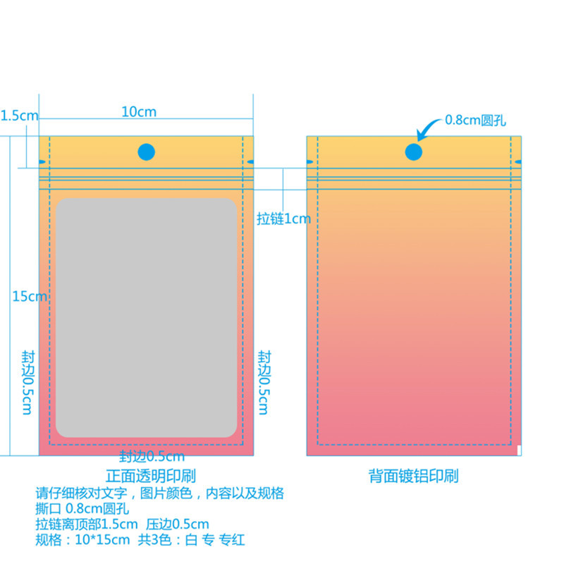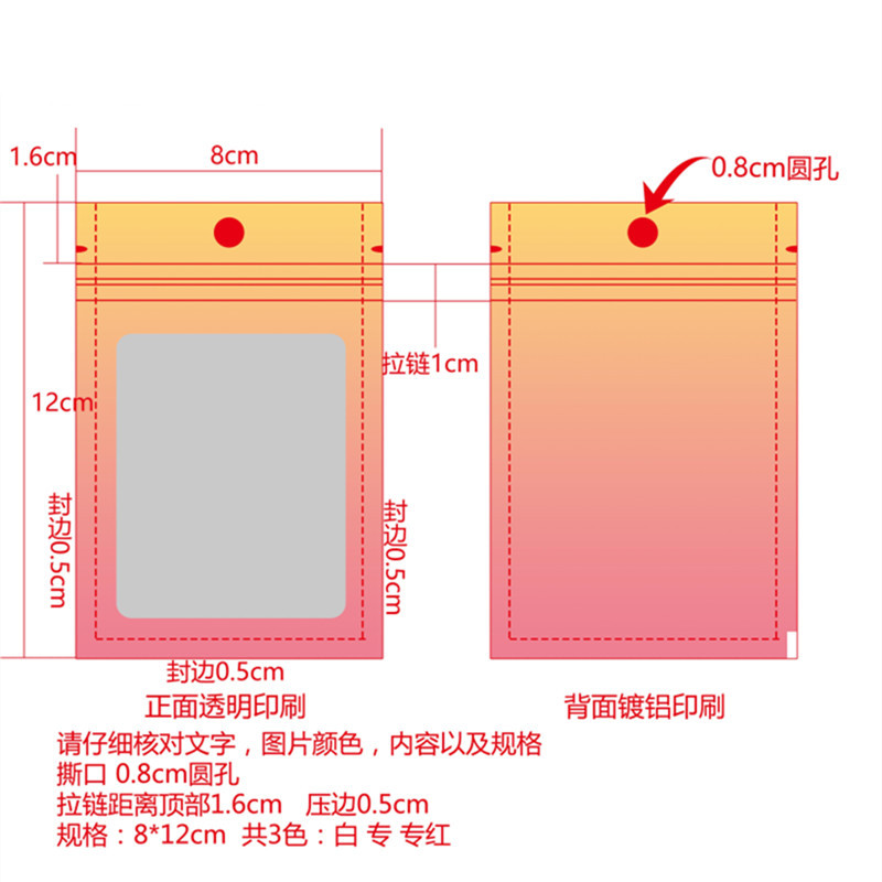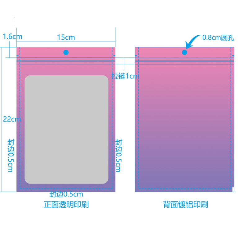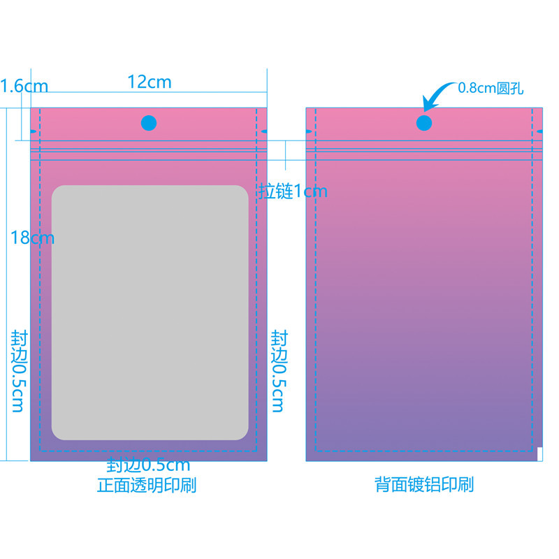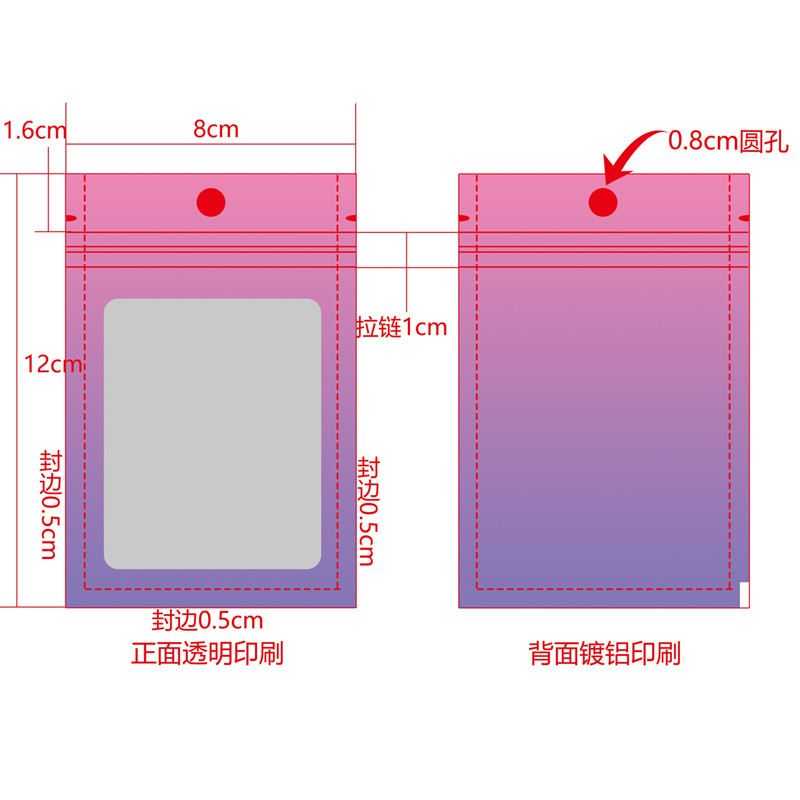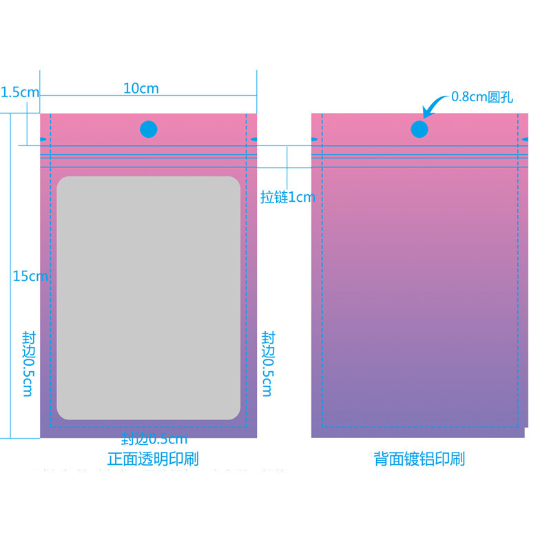Purple gradient yin and yang bone bag, color window aluminum foil ziplock bag, jewelry trial contrasting color sealed packaging bag