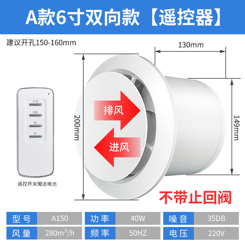 Bathroom ventilation fan exhaust fan silent toilet two-way fan household wall window exhaust fan kitchen remote control