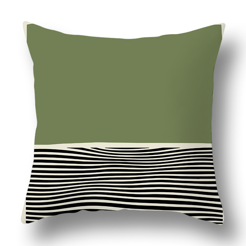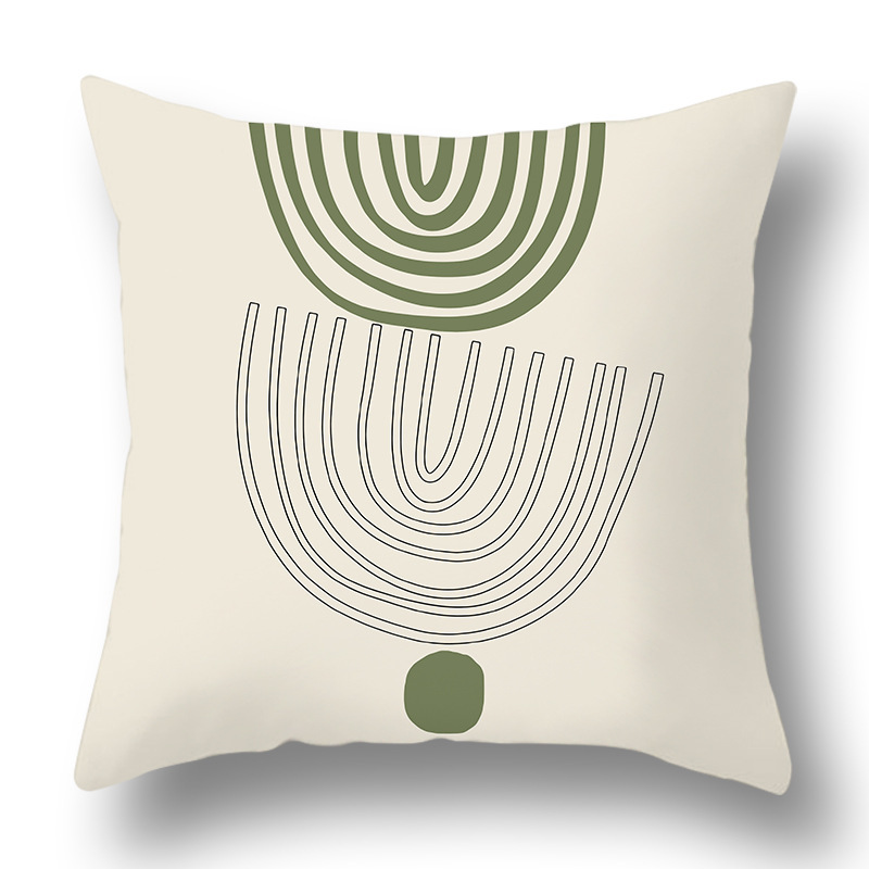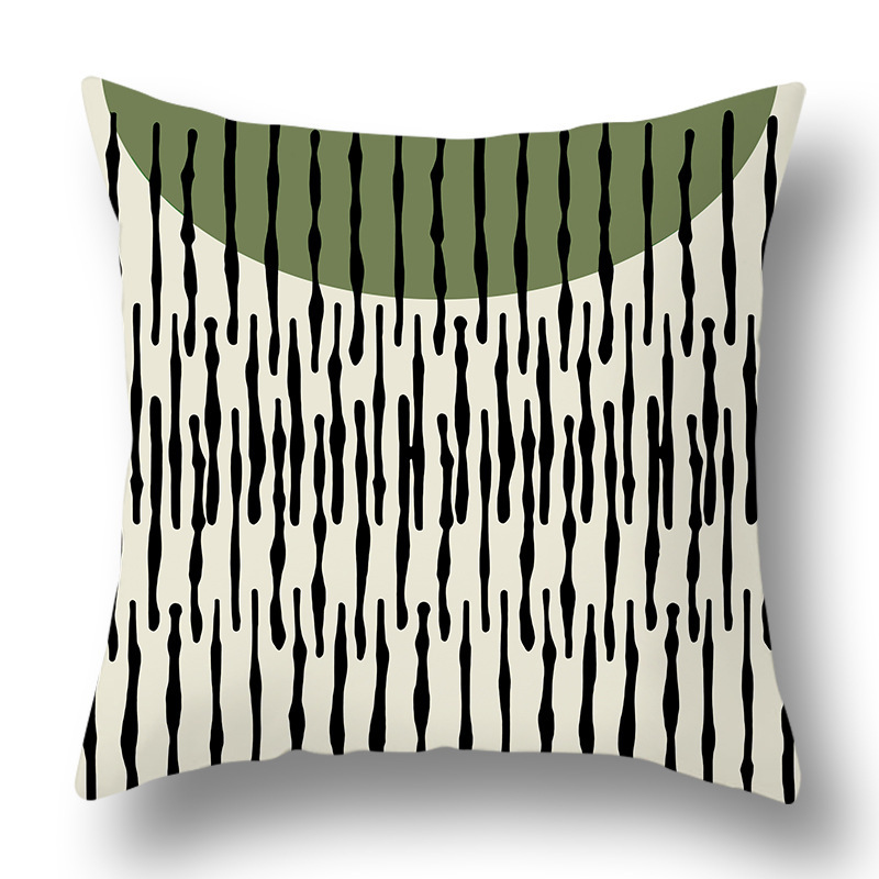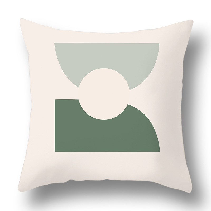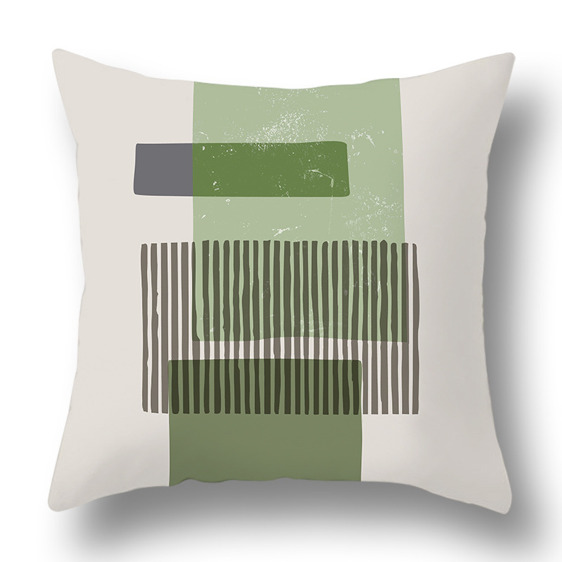 綠色抽象幾何抱枕套ins風花朵印花跨境家居桃皮絨靠枕清爽靠墊套