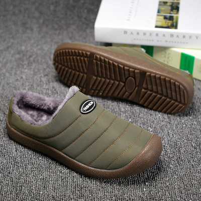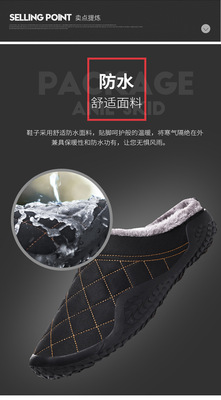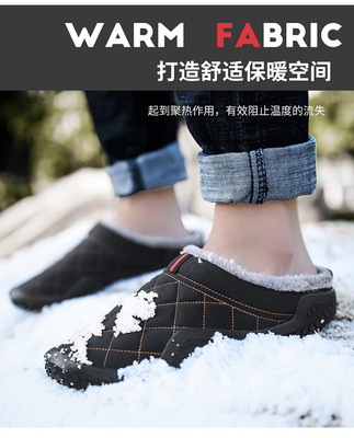 Cross-border waterproof cotton slippers for men and women, large size cotton shoes, winter lined shoes, indoor and outdoor half-drag cotton slippers, wholesale