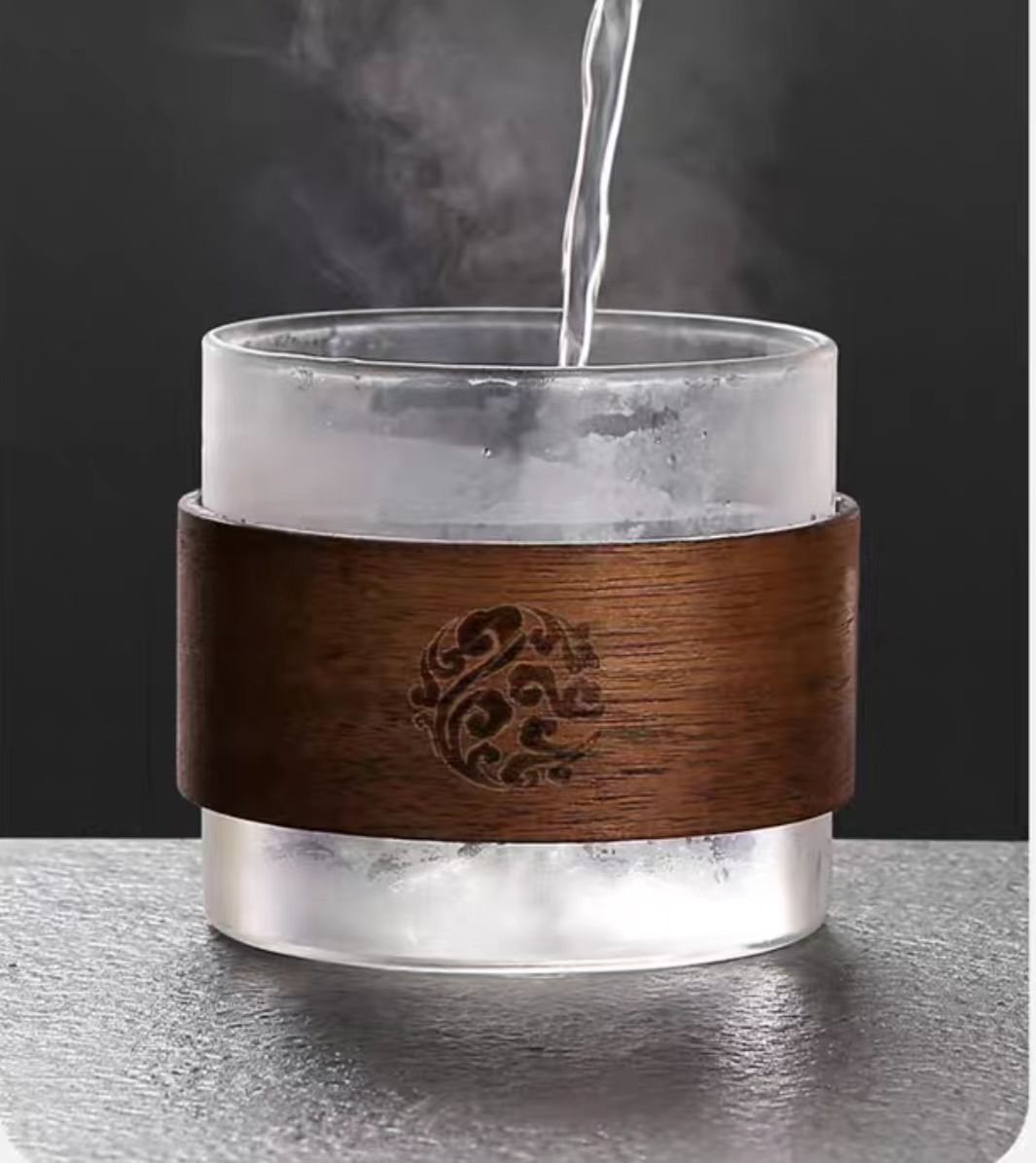 High borosilicate glass small tea cup for home use, ash glass tea cup, walnut ring insulated tea cup