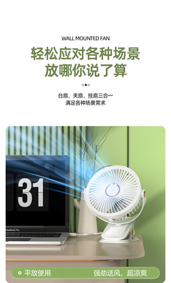 Desktop small fan rechargeable student dorm portable mini desk clip silent wall-mounted clip fan USB cross-border