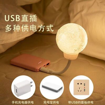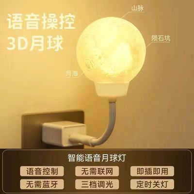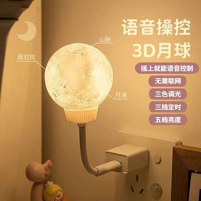 網紅3D月球燈USB聲控LED小夜燈護眼桌面可調節亮度臥室氣氛圍燈光