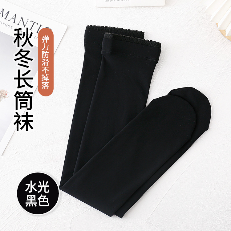 女士秋冬季加絨加厚水光襪過膝長筒襪保暖光腿棉大腿襪
