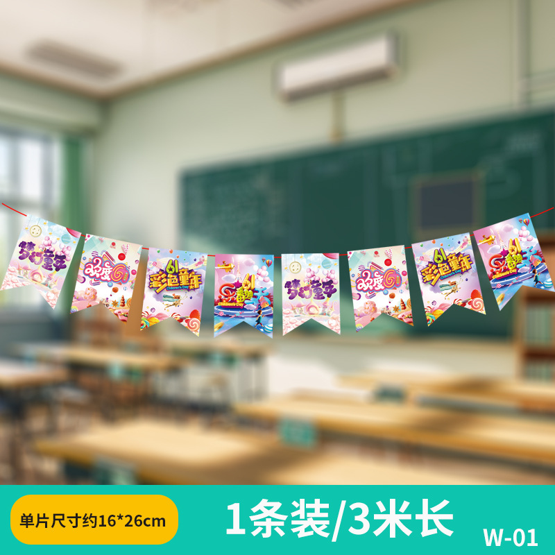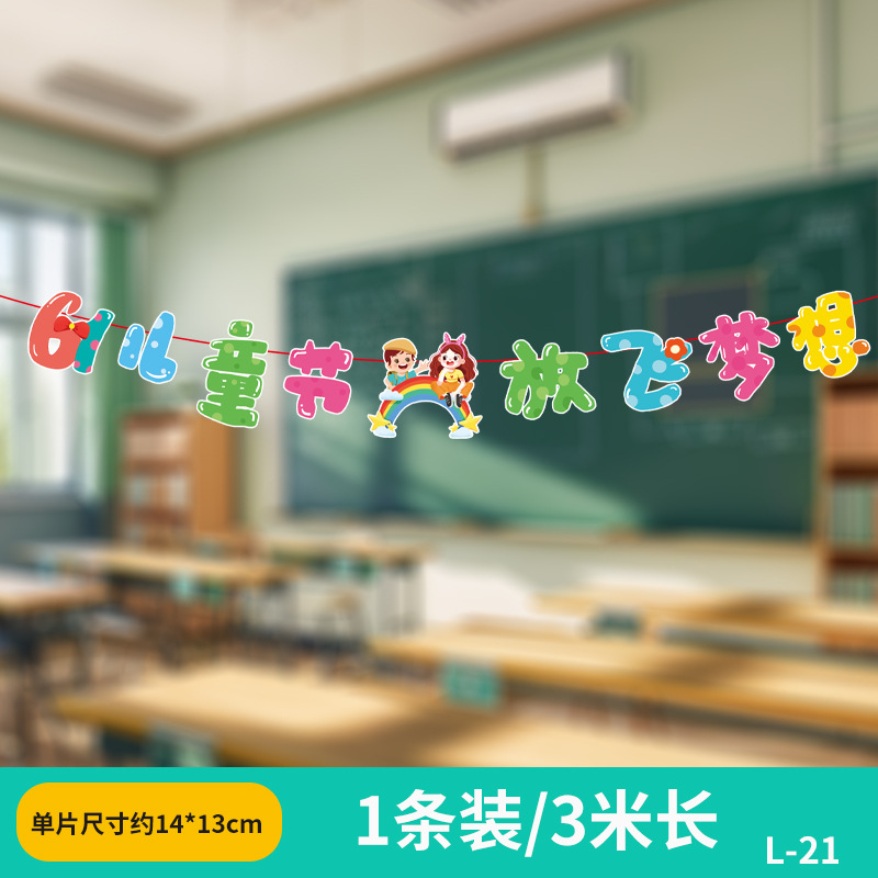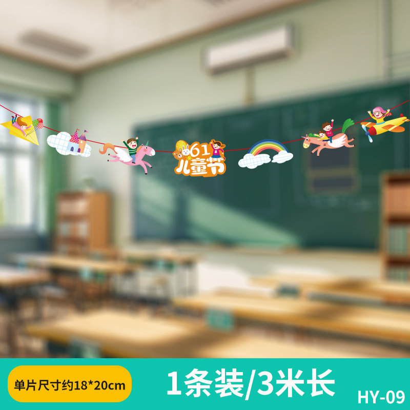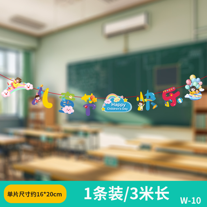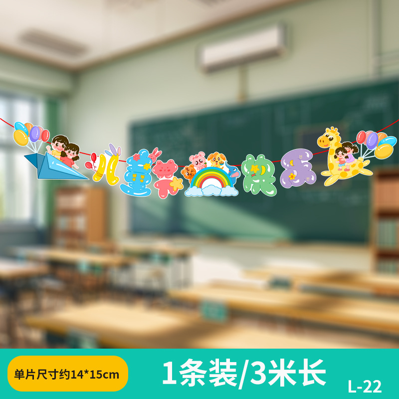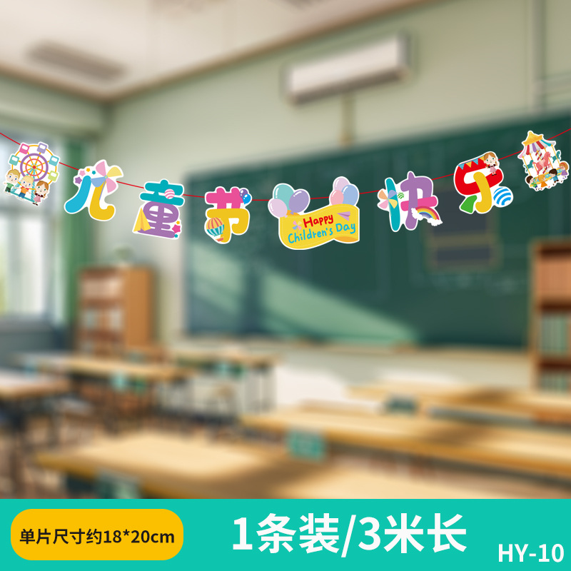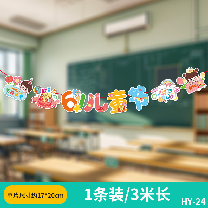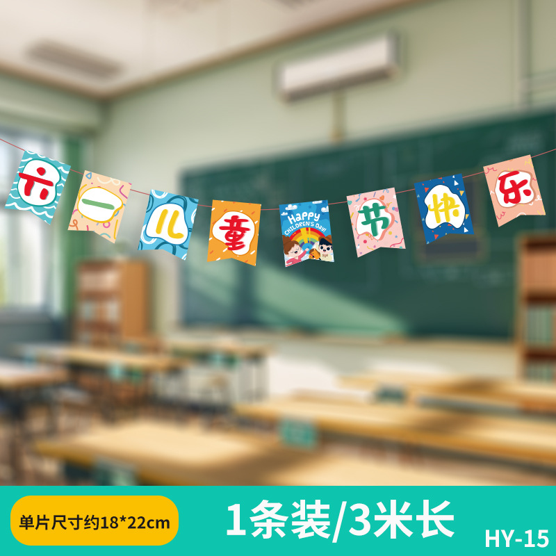 六一兒童節小學幼兒園教室吊飾掛件裝飾品場景布置拉旗拉花彩帶61