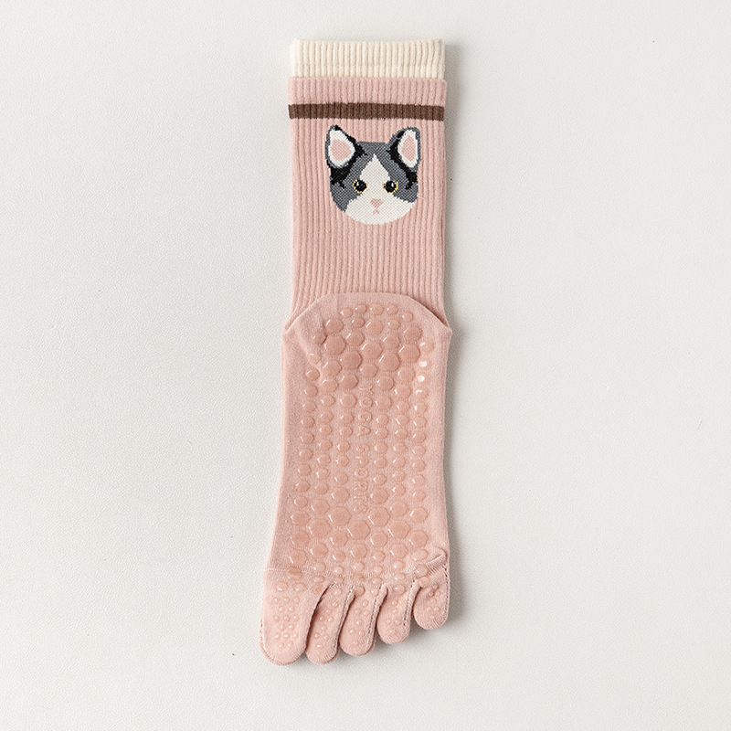 純棉全腳掌硅膠專業防滑瑜伽五指襪普拉提襪子雙螺口中筒運動分趾