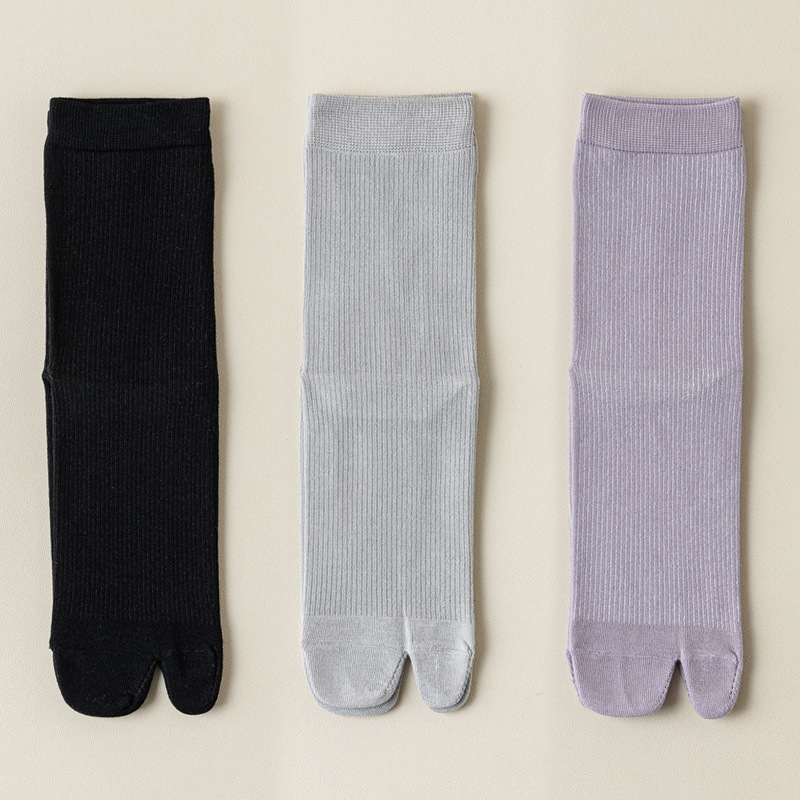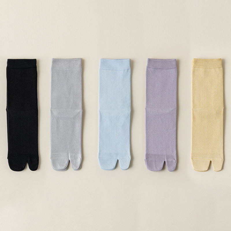 襪子女春夏新款分趾豬蹄襪防臭二趾木屐襪無骨抽條棉襪中筒堆堆薄