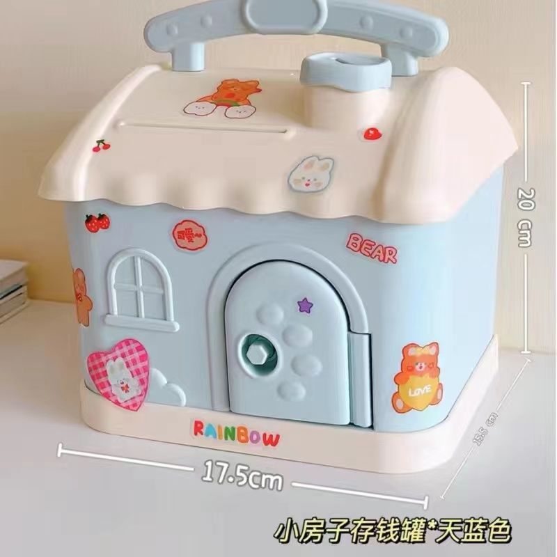 High-looking small house children's piggy bank, saveable and removable large-capacity piggy bank with lock, girl's DIY piggy bank