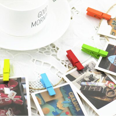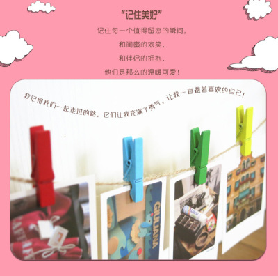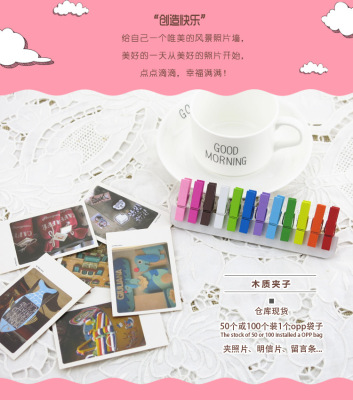 Colorful small wooden clips DIY handmade decorative wooden small clips photo clips hemp rope wooden clips sealing clips