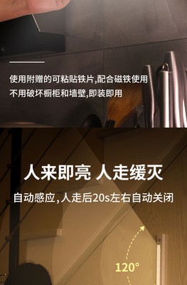 Creative LED strip hand-swept sensor lamp battery magnetic kitchen corridor sensor wake-up bedside cabinet lamp