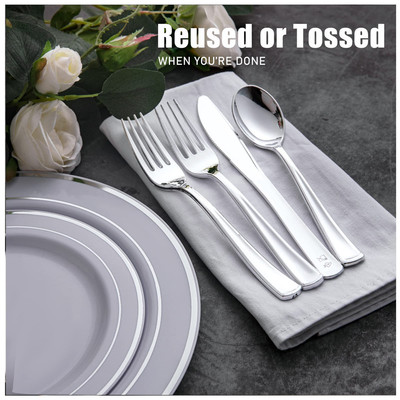Plastic disposable golden knife, fork and spoon set party supplies electroplated tableware Western restaurant dessert mousse cup spoon
