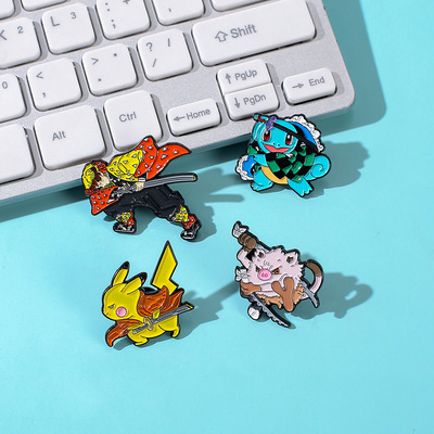 新款鬼滅神奇寶貝忍者龜胸針速賣通卡通可愛書包服裝胸章別針配飾
