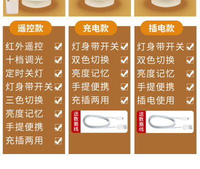 1200 mAh remote control charging model (remote control + three-tone lighting + ten levels of brightness + scheduled lights off + brightness memory)