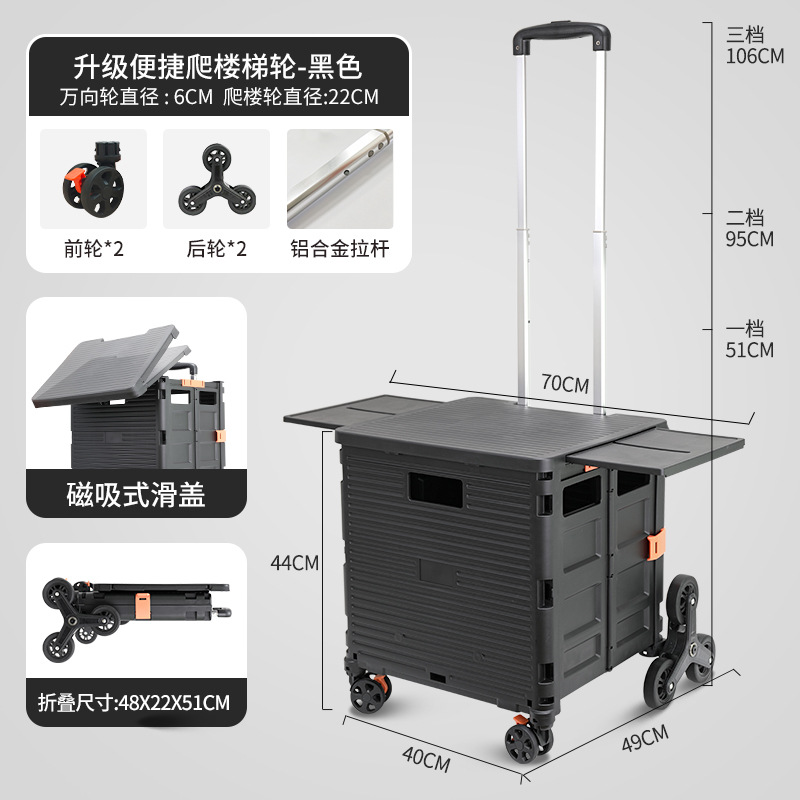 升級磁吸箱蓋一體可左右伸縮爬樓購物車【黑色BY10-C】