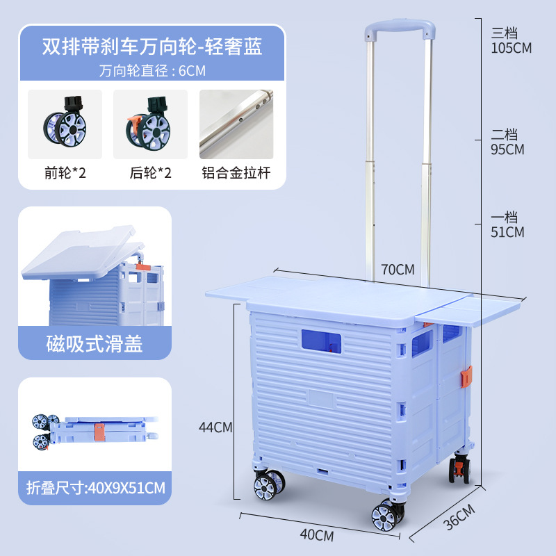 升級磁吸箱蓋一體可左右伸縮超大輪購物車【輕奢藍BY10-C】