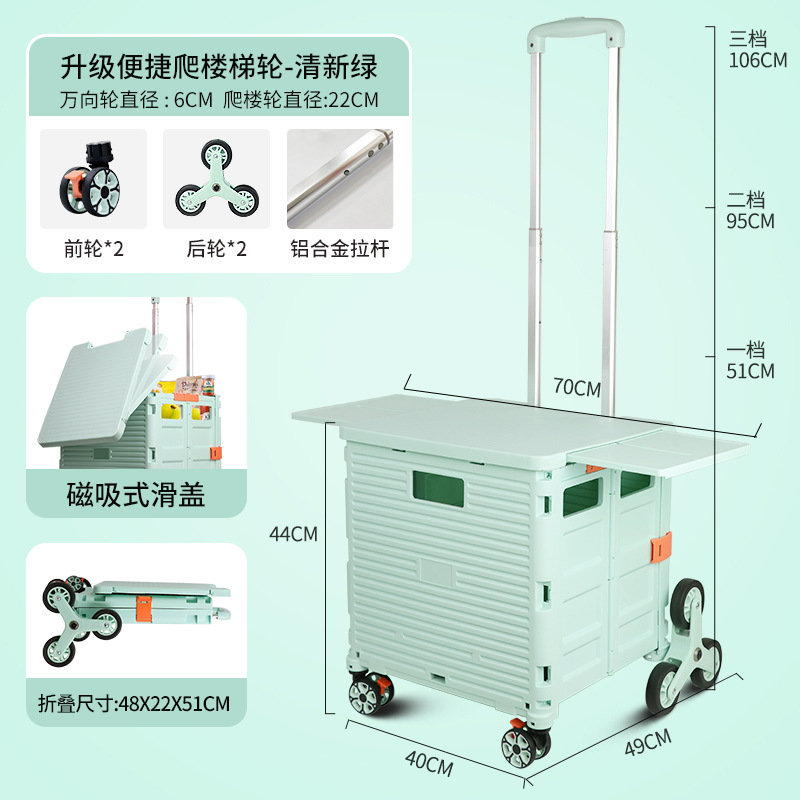 升級磁吸箱蓋一體可左右伸縮爬樓購物車【純色清新綠BY10-C】