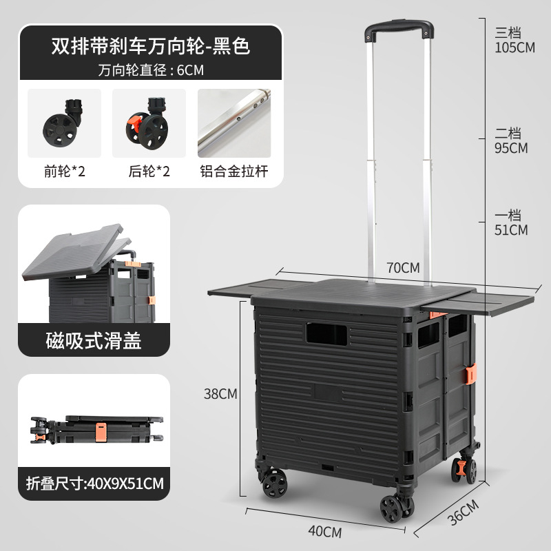 升級磁吸箱蓋一體可左右伸縮購物車【黑色BY10-W】