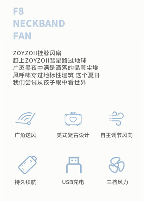 Zoyzoii Zhuyi hanging neck fan children's usb charging lazy mini portable leafless small fan
