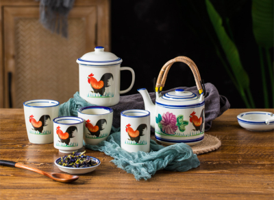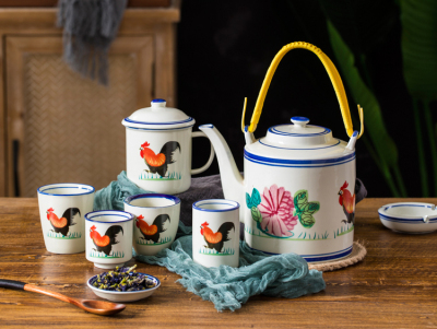BB4C wholesale teapot ceramic large-capacity cold kettle medium plus large chicken cold kettle handle tea