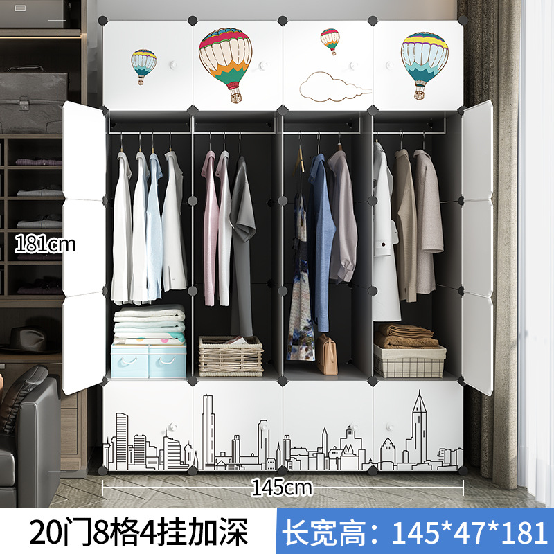Simple wardrobe assembly for home bedroom hanging locker storage cabinet rental plastic cloth wardrobe small apartment