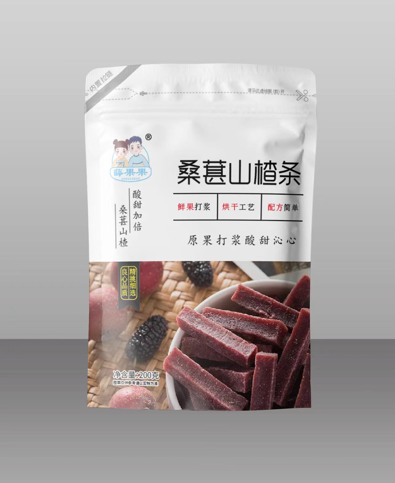 Packaging specifications: Mulberry and hawthorn strips in bag 250g