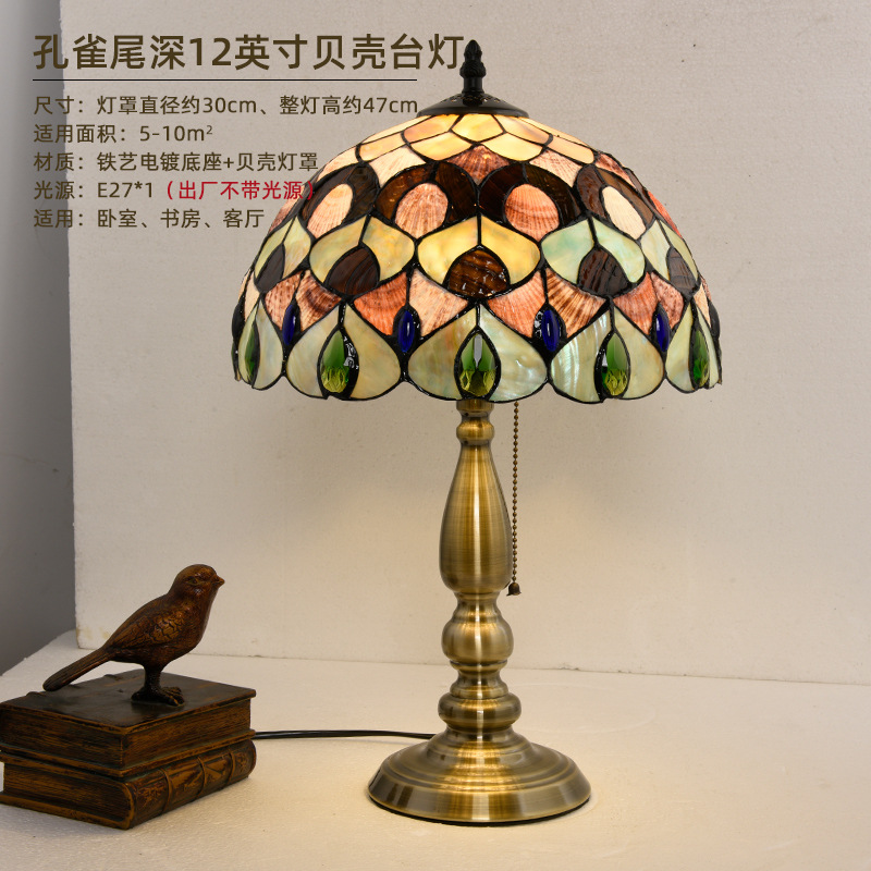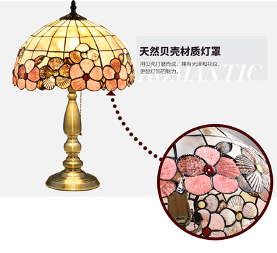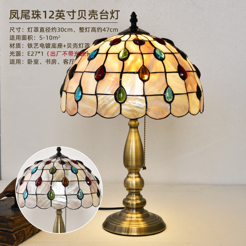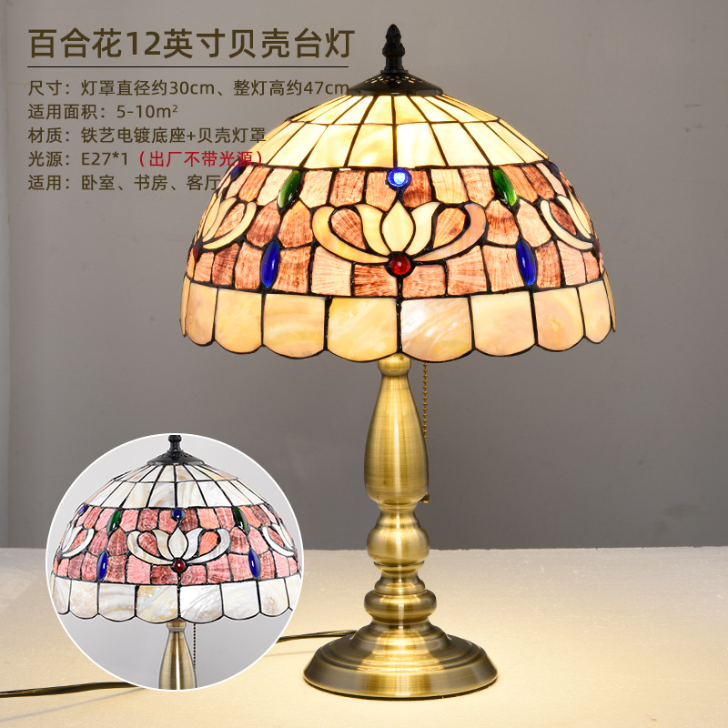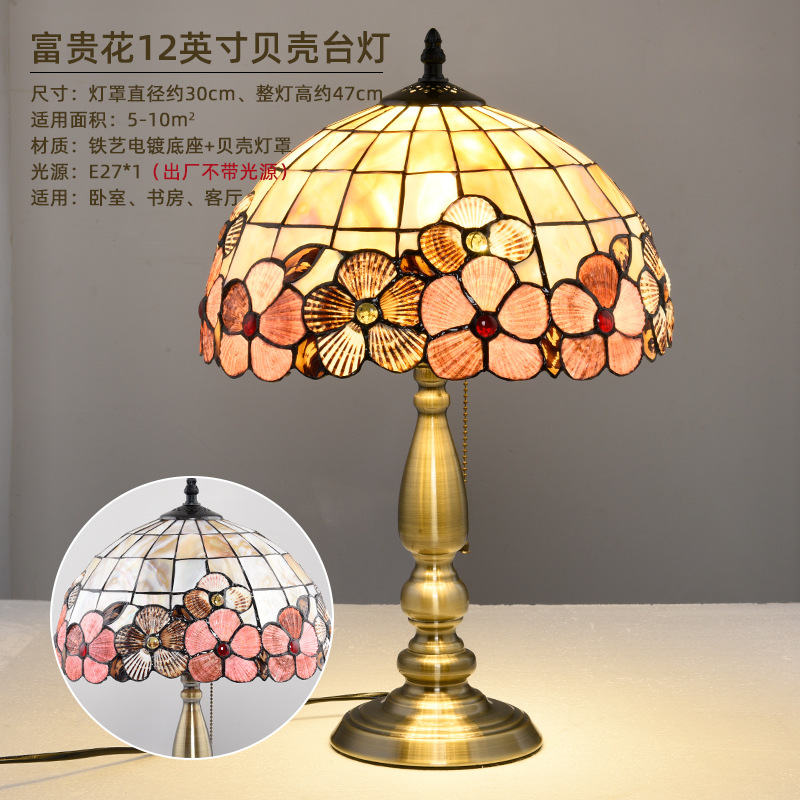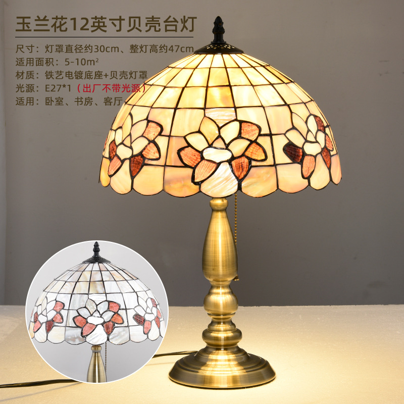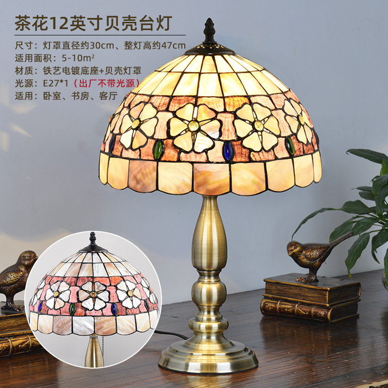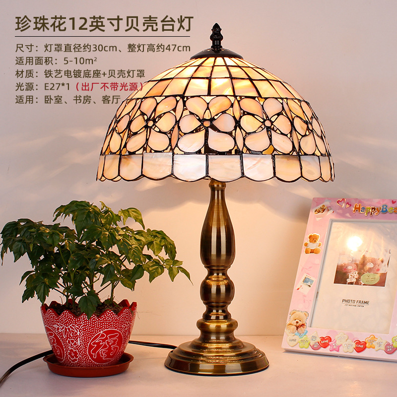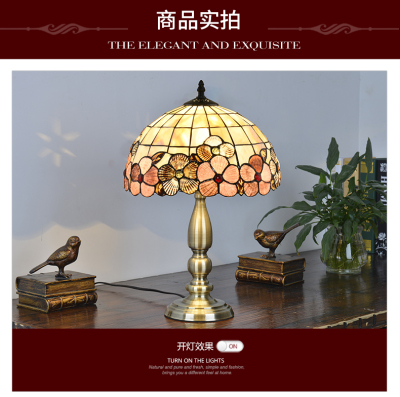 American Tiffany Shell Bedside Lamp Decor Table Lamp European Mediterranean Warm Living Room Study Lighting