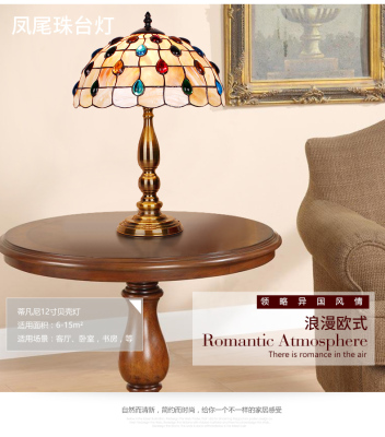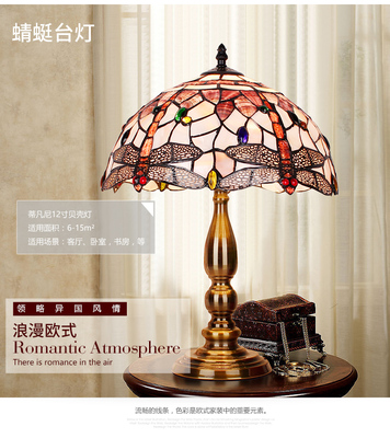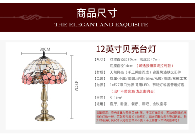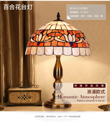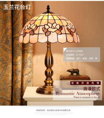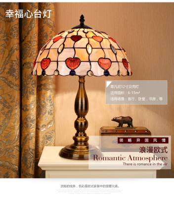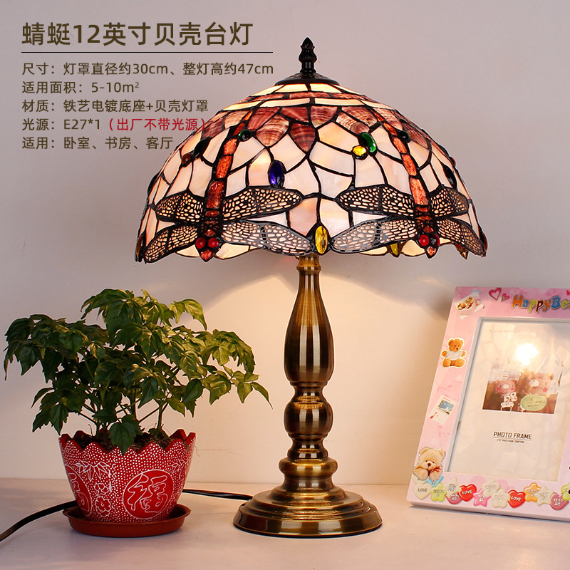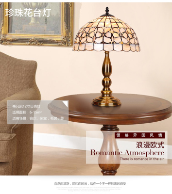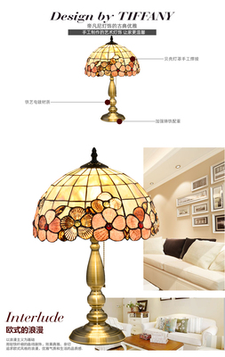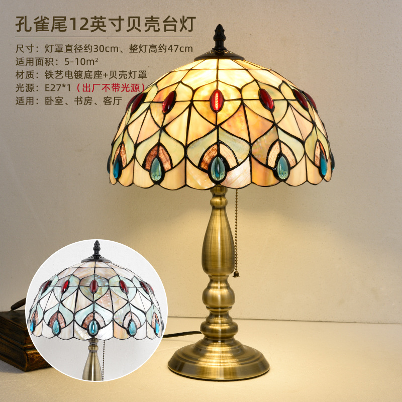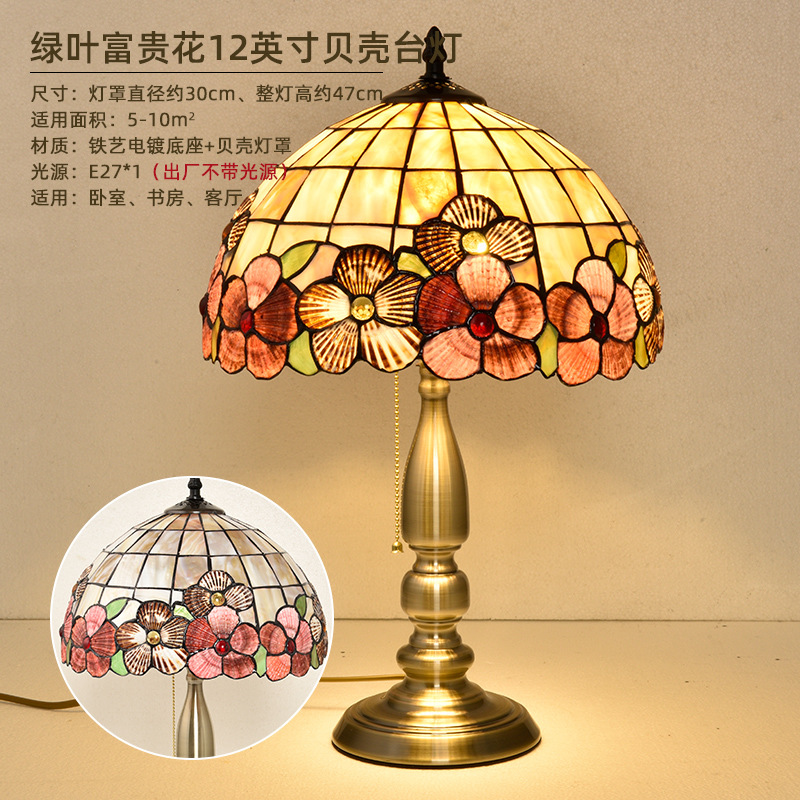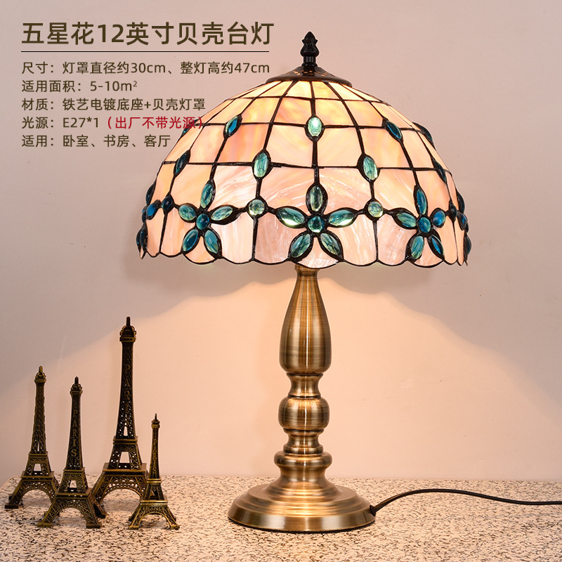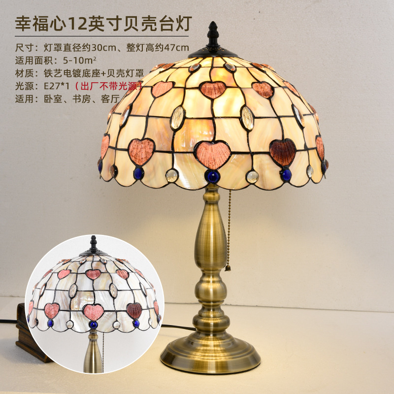American Tiffany Shell Bedside Lamp Decor Table Lamp European Mediterranean Warm Living Room Study Lighting